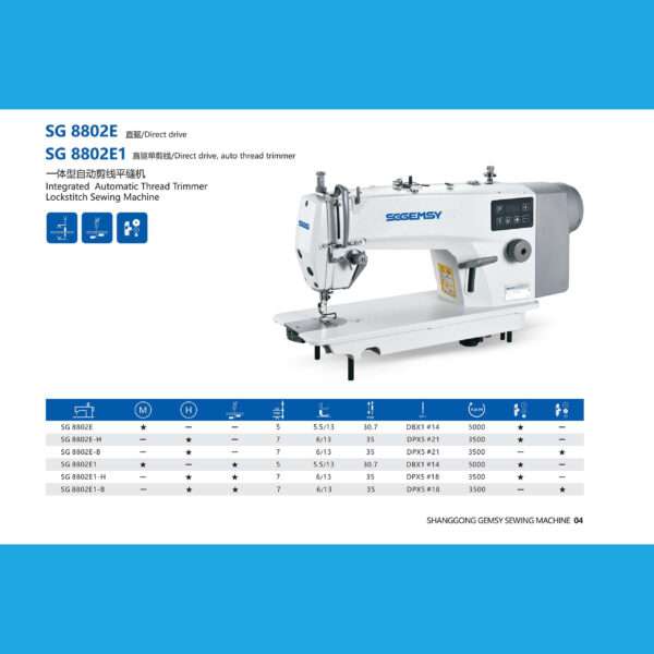 Gemsy 8802E – Reliable, High-Speed Lockstitch Machine for Precision Sewing